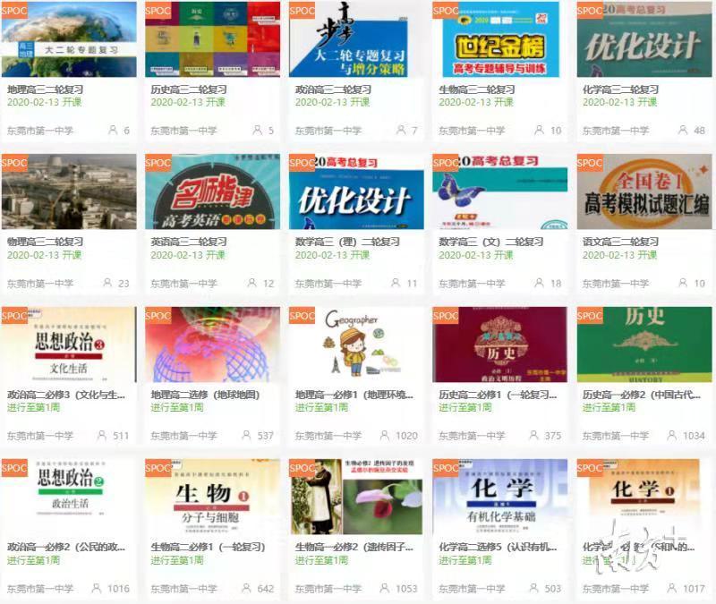 2月9日晚18点,东莞一中高一高二两个年级18门科目的先修课程已经在“东莞慧教育慕课平台”正式上线,“今天是开课的第一天,由于是录播课程,我们还没有实时跟踪学生的学习情况”,东莞一中副校长杜世民表示,“不过选课的学生还是挺多的,也有部分外校的学生选了我们学校的课程。”