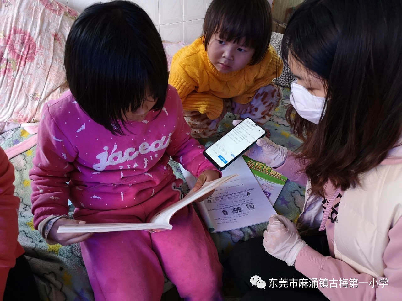 3月5日下午,麻涌镇古梅第一小学三年级学生小雁(化名)第一次在自己家里用上网络进行线上学习。原本依靠老师和父母电话维系学习沟通的她,如今捧着课本、拿着手机开始全程参与。