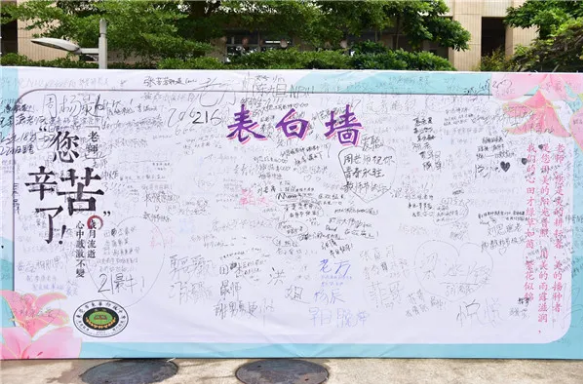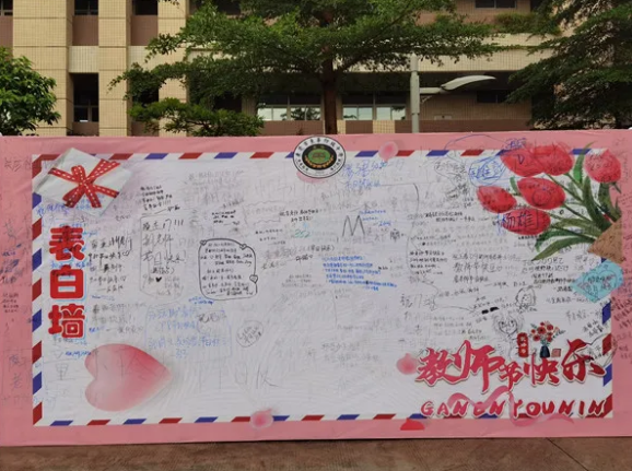 学校架空层下的表白墙上密密麻麻,写满了学生对老师们的祝福。今日南方+通过一张张照片带大家回顾温情时刻。