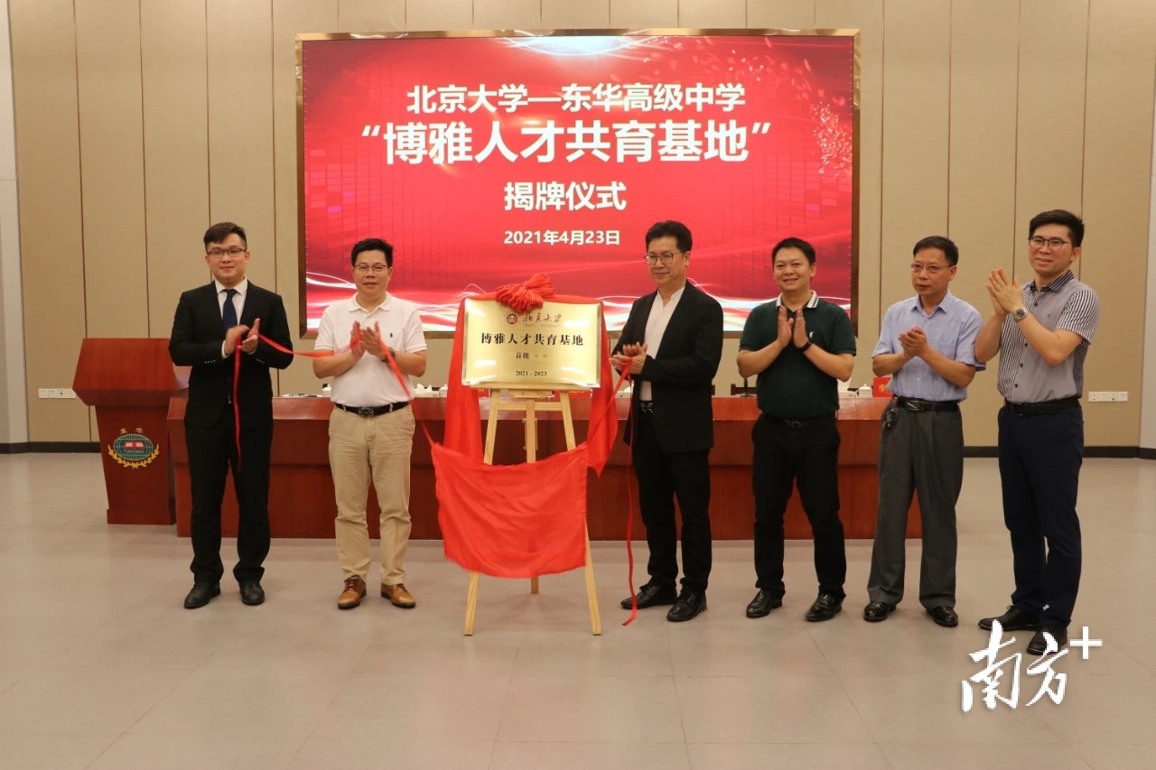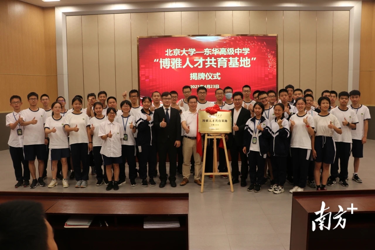 今日,好消息继续传来,东华高级中学通过学校微信公号官宣——“北京大学-东华高中博雅人才共育基地”正式揭牌!由此,东莞两校加入北京大学首批“博雅人才共育基地”阵营。