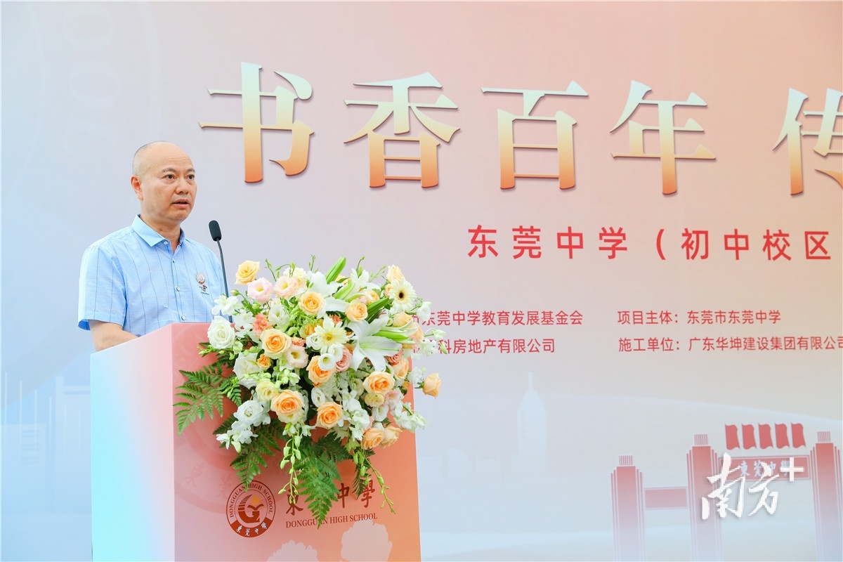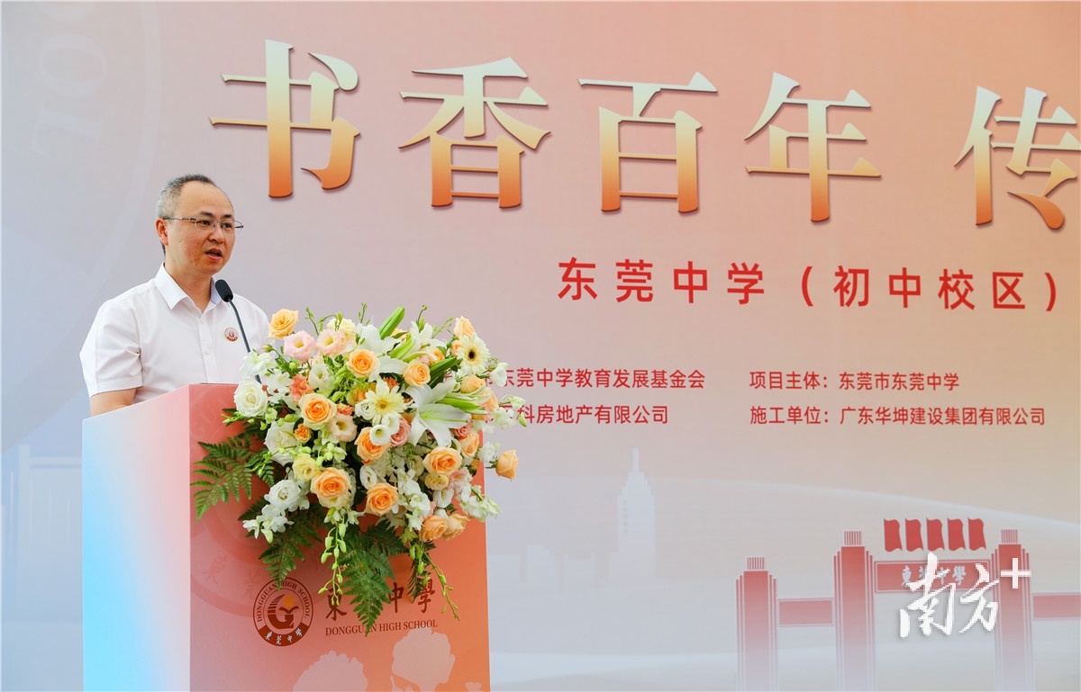 东莞中学(初中校区)的建设工程同样是东莞市教育扩容提质千日攻坚行动布点计划之一。“东莞中学是百年老校,也是东莞基础教育的龙头学校,今天的奠基是学校发展史上具有里程碑意义的大事。”叶淦奎表示,“希望学校按照打造百年工程的目标,早日将高水平的设计方案转化为高质量的学校;并以扩容为新起点,朝着打造莞邑名校乃至全国名校的目标大步迈进。”