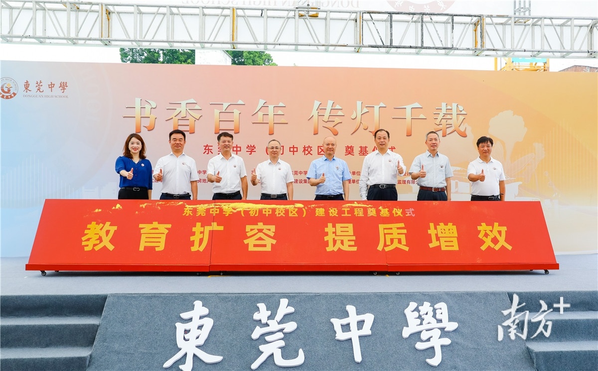 8月5日上午9时,“书香百年 传灯千载”东莞中学(初中校区)奠基仪式在东莞莞城新风路129号举行。根据计划,明年9月,占地3万多平方米的东莞中学(初中校区)将在这里拔地而起,新校园不仅能够新增2400个优质公办初中学位,还将成为东莞中学深厚历史文化积淀的全新传承沃土。