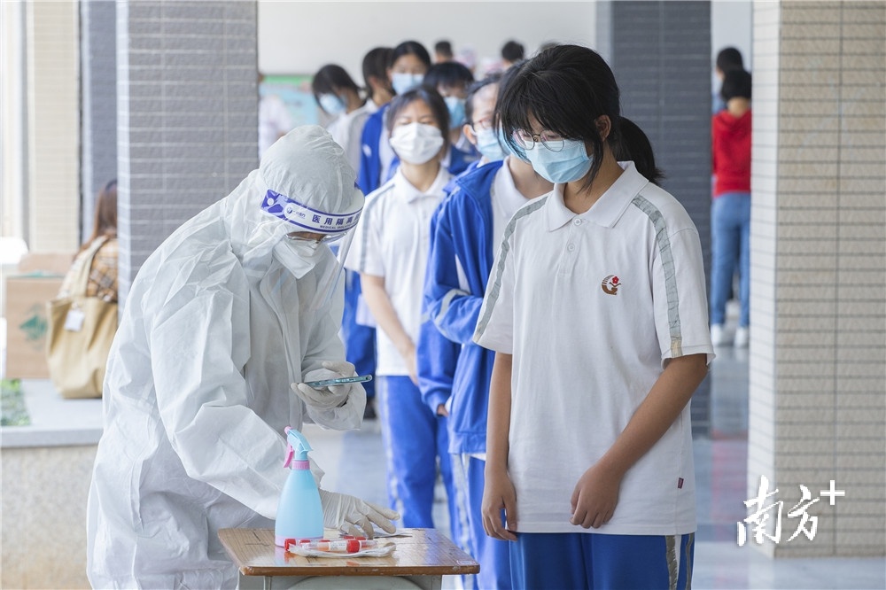 在东莞中学南城学校,学生排队进行核酸检测。南方日报记者 孙俊杰 通讯员 罗伟良 摄