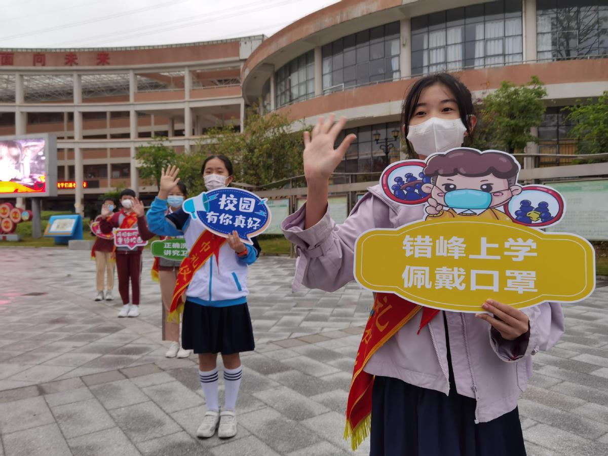 错峰上学,佩戴好口罩