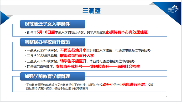 另一方面,为有效规范招生入学行为,根据省教育厅有关政策规定,东莞将对民办学校直升政策进行调整。
