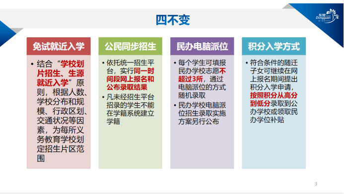 王健介绍,今年东莞市义务教育阶段招生政策总结而言有“四个不变”。