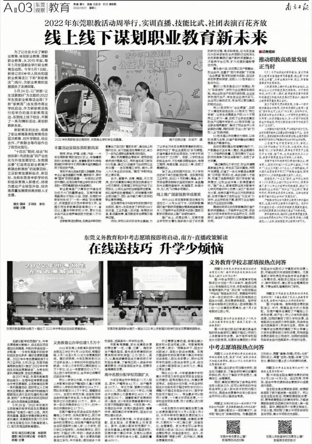 5月29日,“2022年东莞市义务教育阶段学校招生志愿填报指导会”在南方+接力上线(点击查看直播回顾>>>)。两天两场直播,直面升学需求解决考生家长痛点,深度服务东莞170万中小学生及背后500万教育家庭人口,助力东莞品质教育建设。