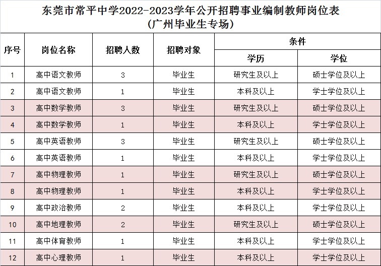 作为办学规模最大的市属公办高中,东莞市常平中学为满足市政府教育“扩容提质”发展要求,2022年9月广州场应届毕业生招聘专场需要招聘优秀应届毕业生20名。