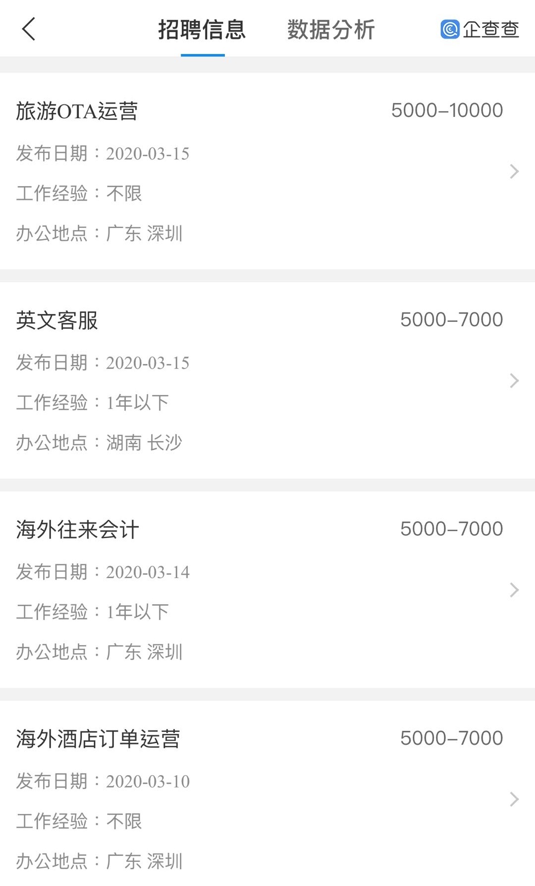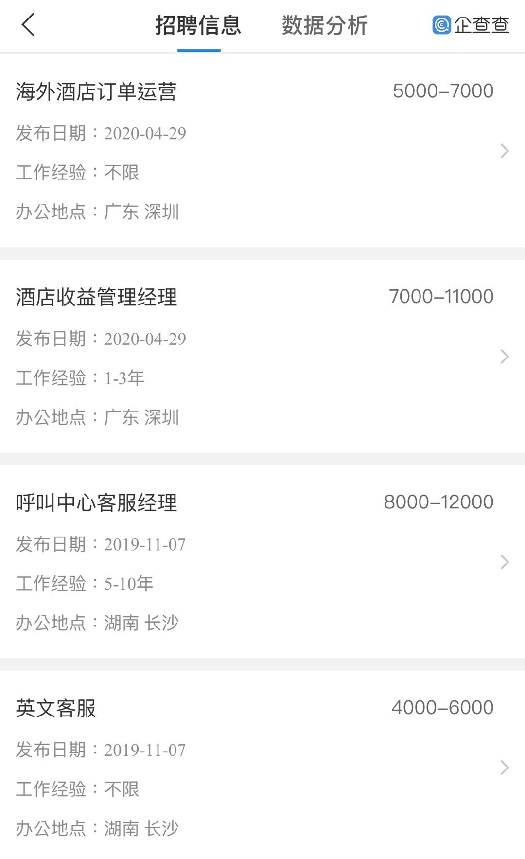 公司在某平台进行岗位招聘的截图