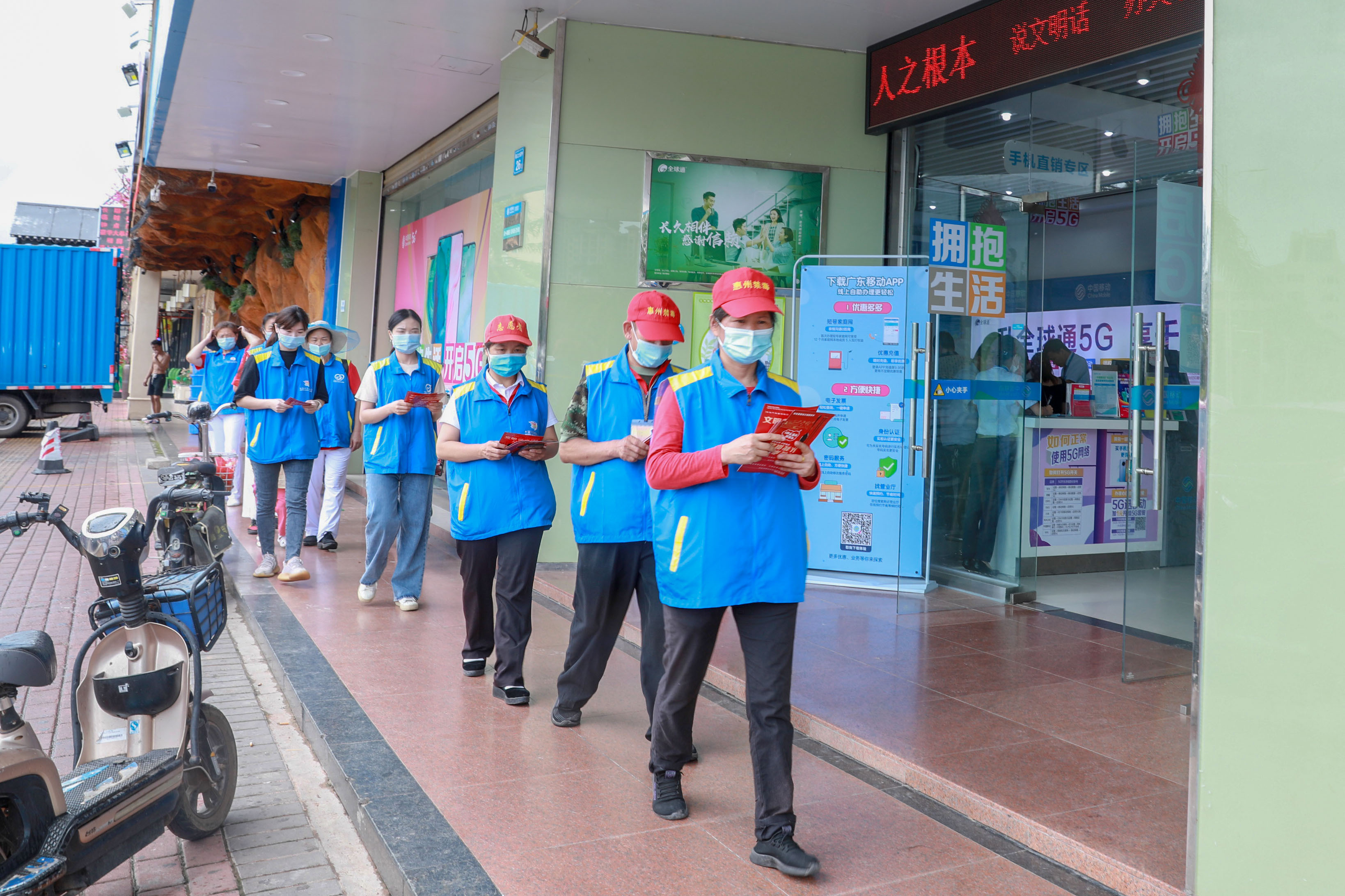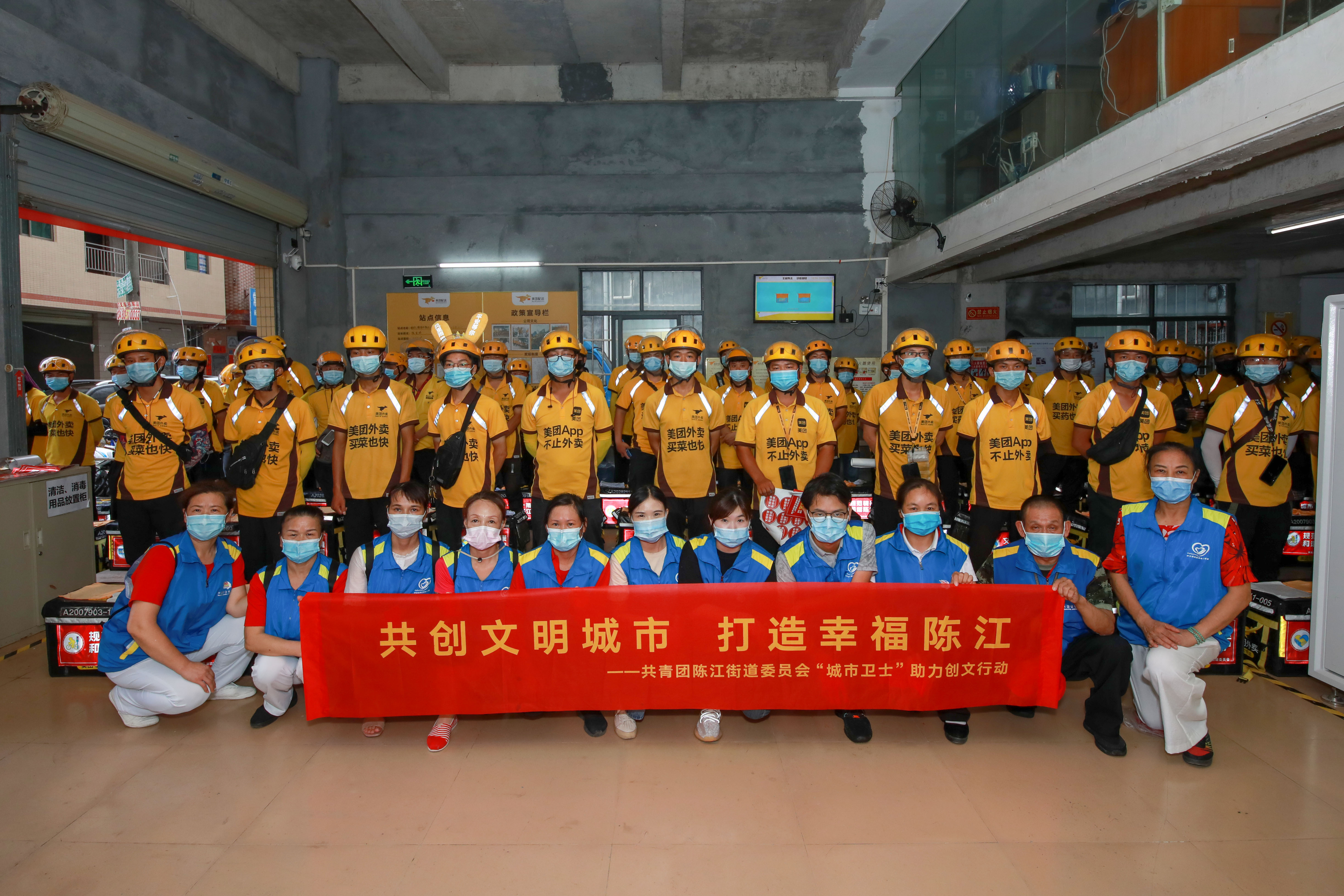 近日,仲恺高新区陈江团委组织一批青年志愿者化身“城市卫士”,以加大力度宣传创建文明城市活动。志愿者们与相关外卖和快递企业联手,奔走在陈江的大街小巷,打通创文宣传工作的“最后一公里”。