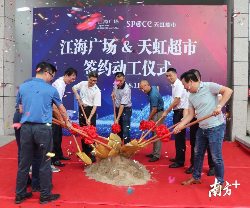sp@ce天虹超市进驻江门。8月11日,江海广场和sp@ce天虹超市举行签约暨动工仪式。
