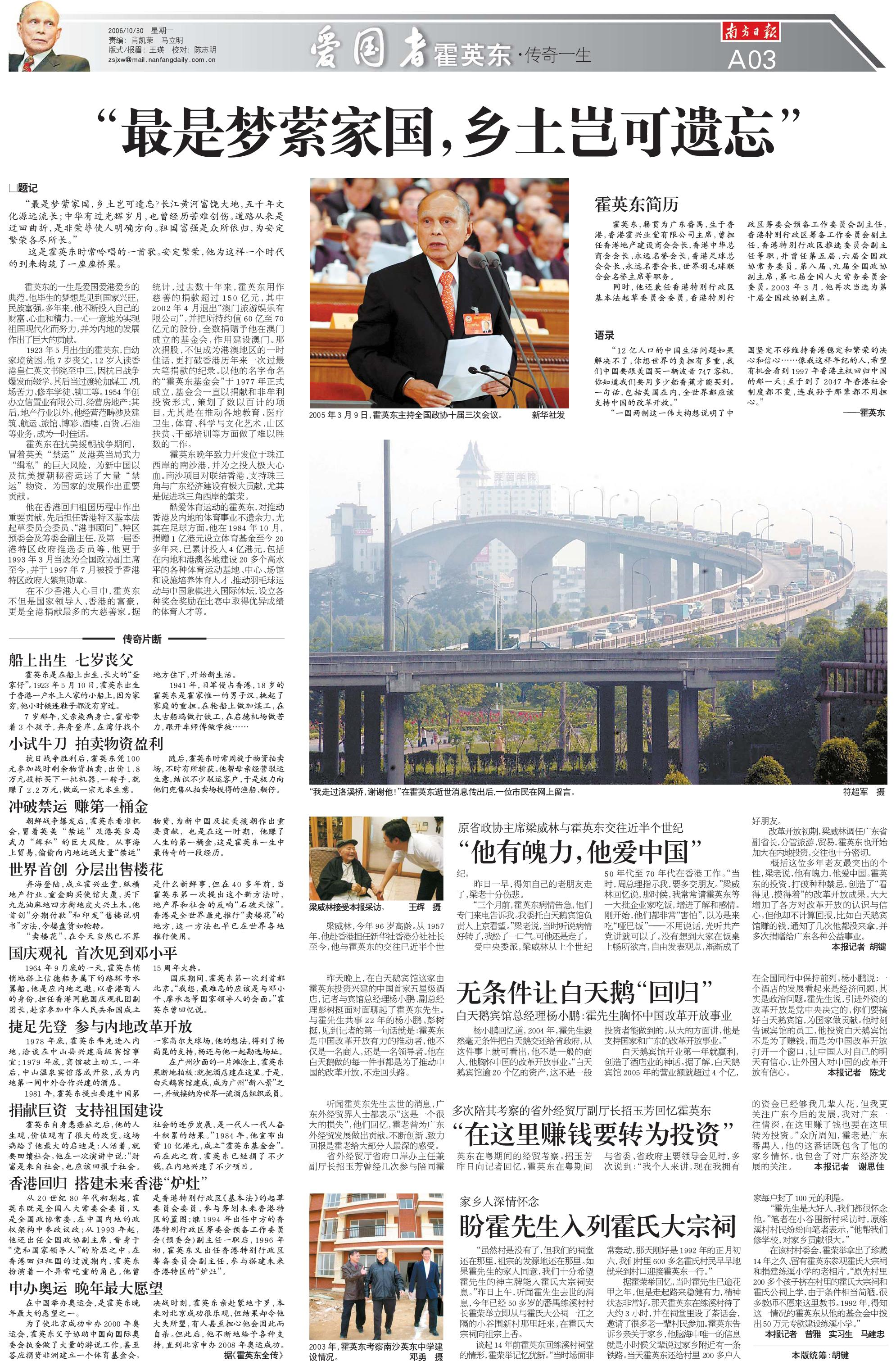 “当时我们承担了很多其实是政府的功能。”霍震寰说,“父亲一直在考虑如何填海造地、怎么美化环境,包括如何做好交通、能源、电信、供水、供电、港口等基础设施建设。”