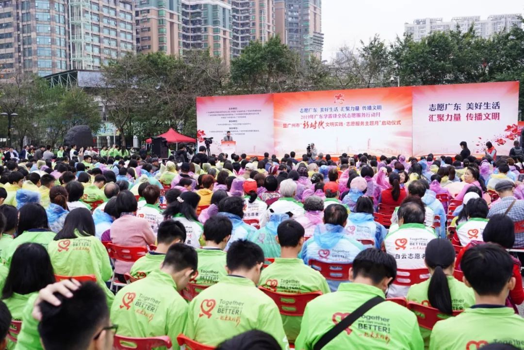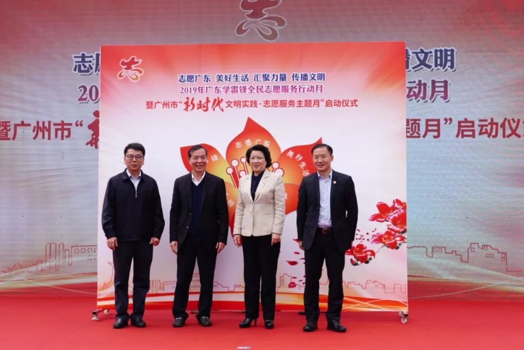 今日上午,省文明办、团省委、省志愿者联合会联合广州市发展志愿服务事业指导委员会、广州市文明办、团广州市委、广州市民政局共同举办的2019 年广东学雷锋全民志愿服务行动月暨广州市“新时代文明实践•志愿服务主题月”启动仪式在英雄广场举行。