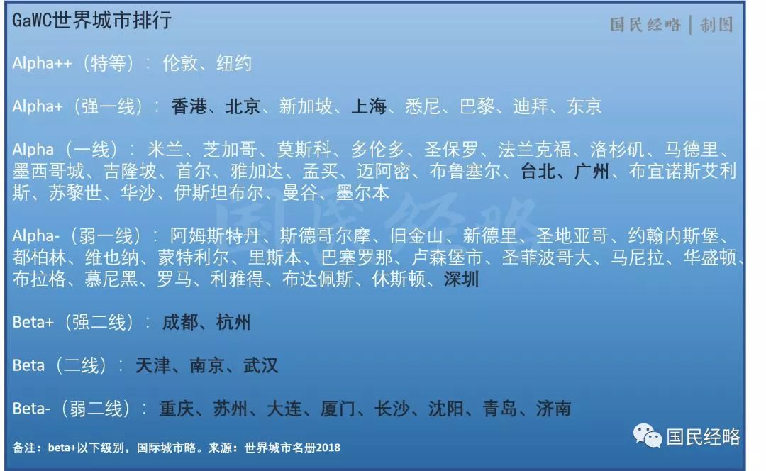广州不仅是华南地区唯一的国家中心城市,也是全国排名首位的交通中心,本专科学生总量已经超过武汉位居全国第一位,在GaWC发布的世界一二线城市榜单中,广州位列Alpha级(一线)。