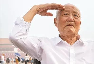 从轮椅上起身站立,庄严地敬礼