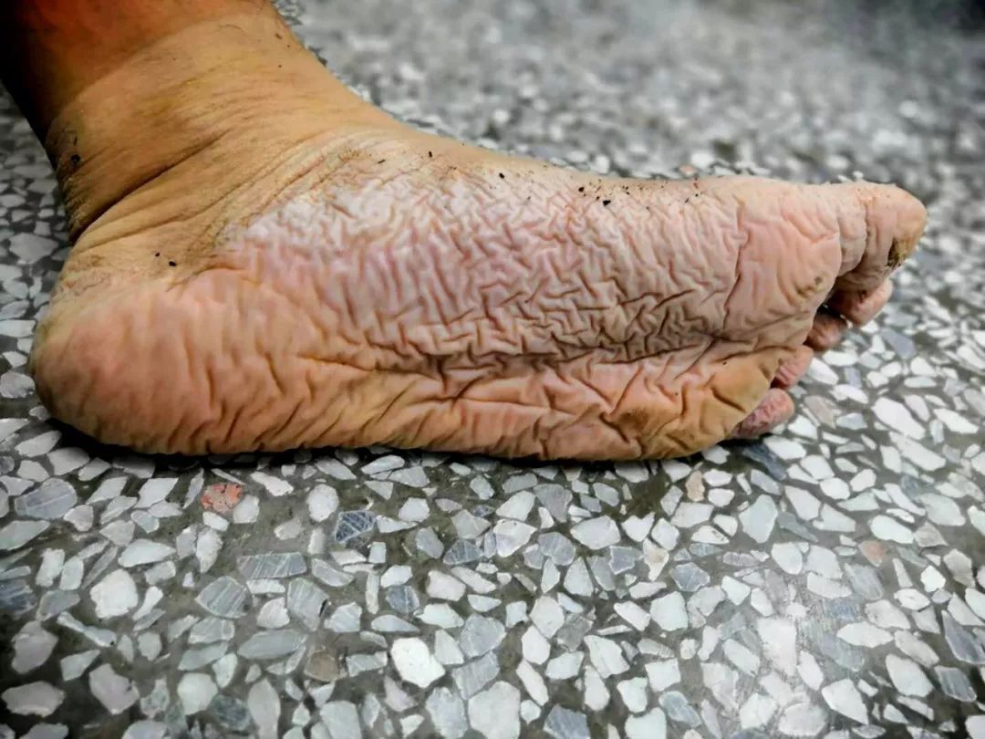 “能不能不把脸拍进去,别让我妈知道是我的脚”南方汛情严重广东省武警河源支队的官兵们连续奋战在抢险救灾一线这双发白、褶皱、浮肿变形的大脚已经在水里断断续续泡了4天从支队长到列兵浮肿变形的脚,是他们的“标配”