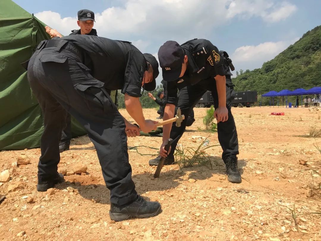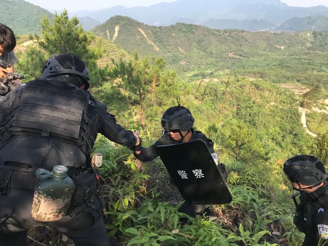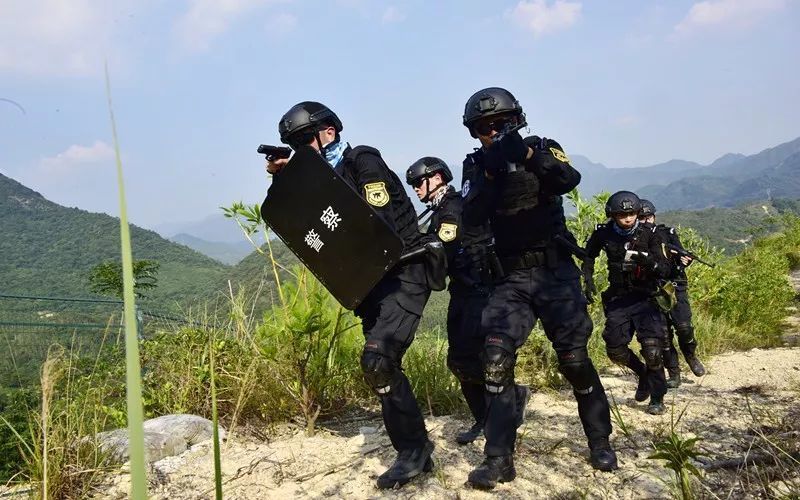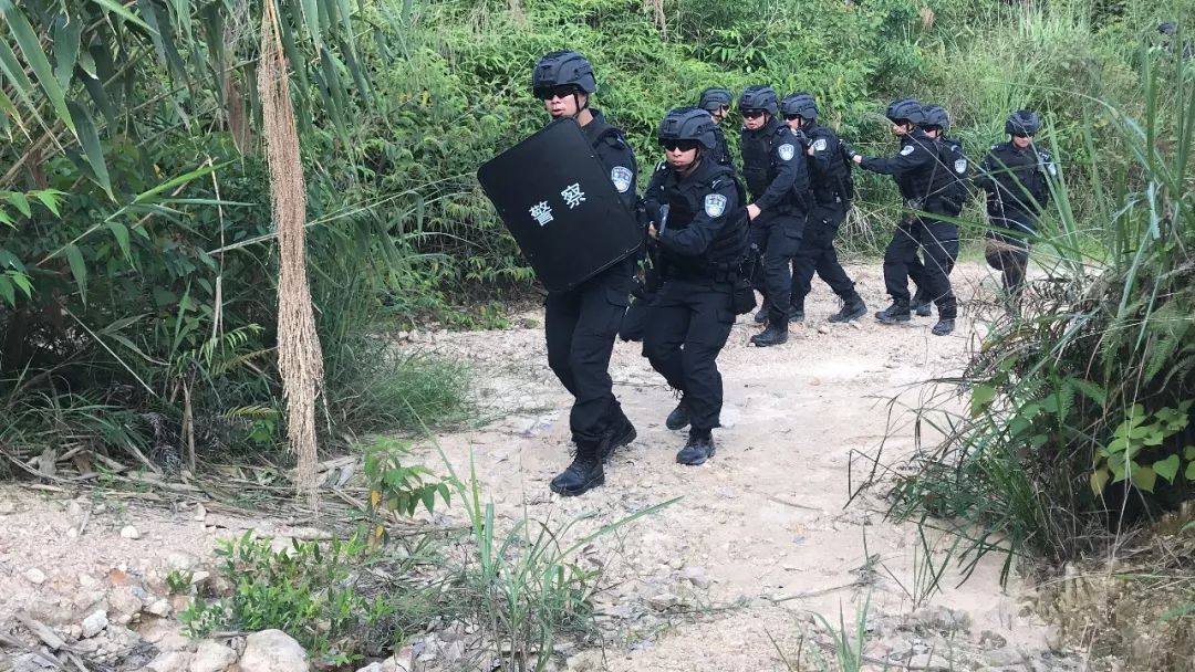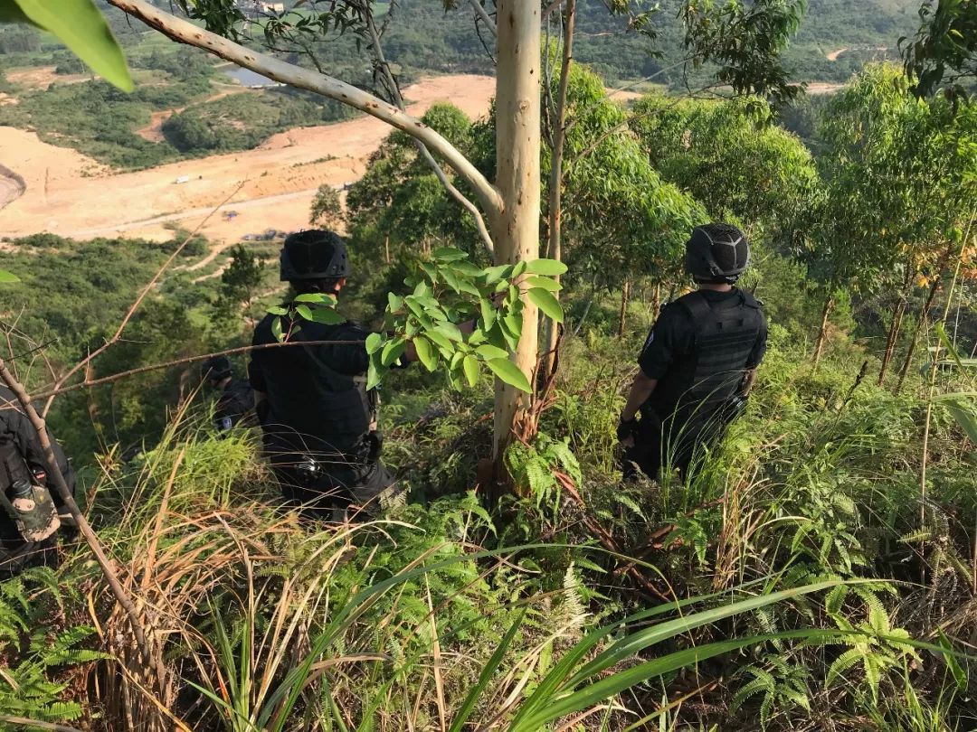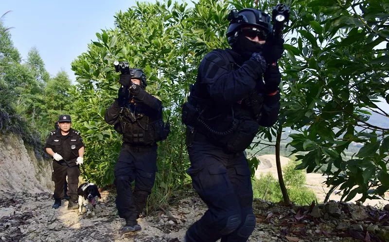 某作案团伙潜藏到市郊某山地实施不法活动。广州市公安局特警支队奉命组织直属大队及部分区分局特警队快速抵达任务区域,实施山地丛林围捕。