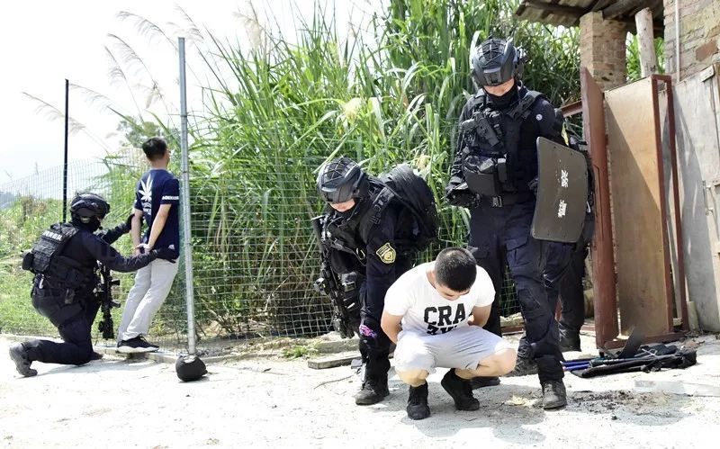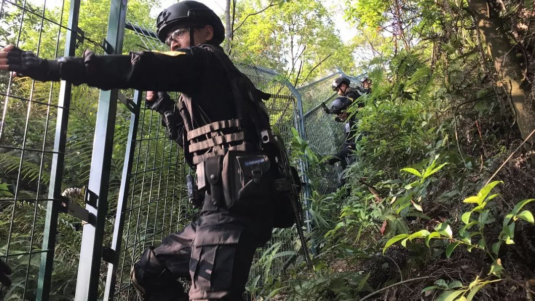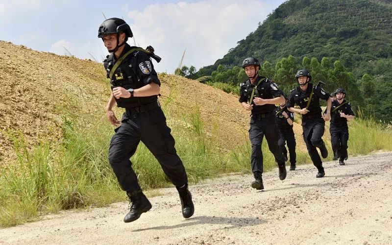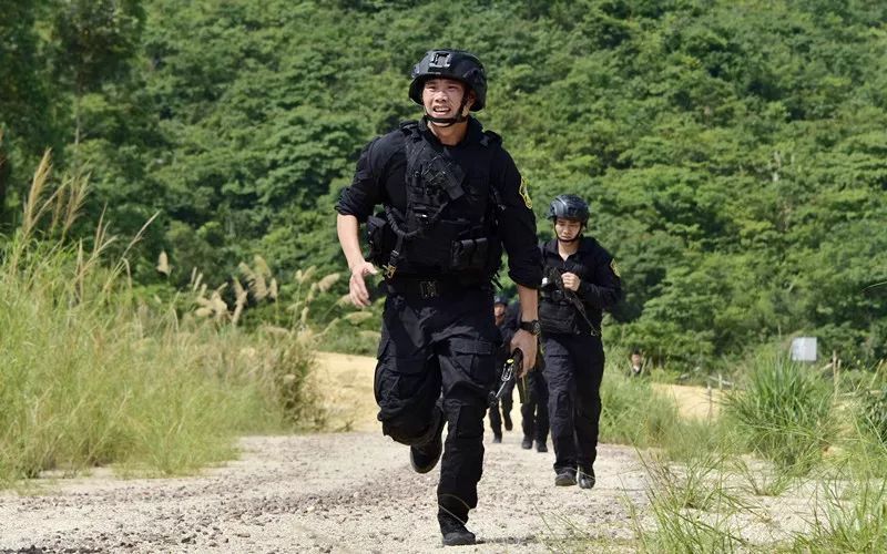 本报记者跟随广州市公安局特警支队深入市郊某山地体验了此次山林围捕。拉练采取“红蓝对抗、双盲测评”模式,组织开展了山地丛林搜索、夜间秘密抓捕、山地丛林围捕、解救被劫持人质等事件处置科目训练。