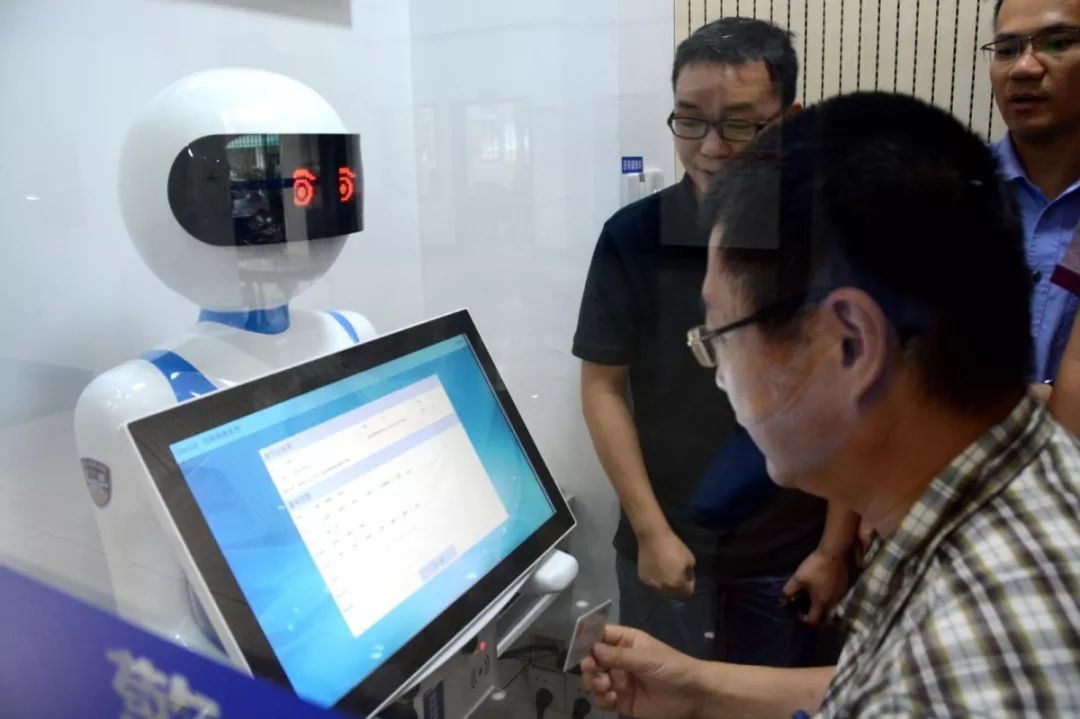 民警教群众使用自助报警机器人。