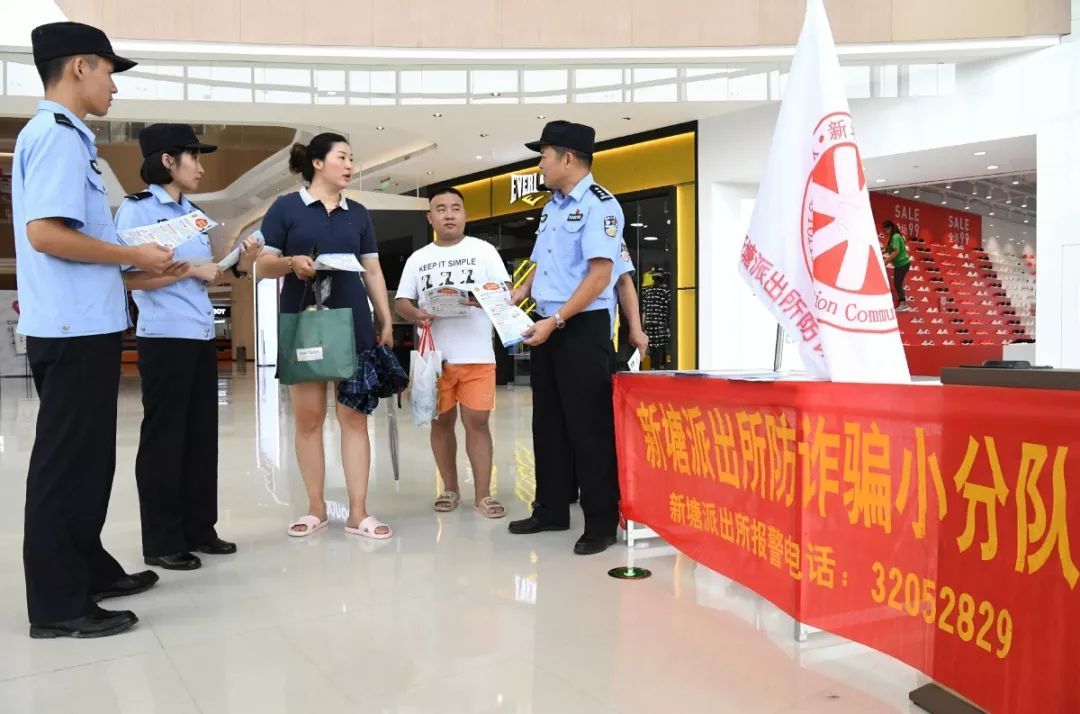 为了在源头减少诈骗警情发生,新塘派出所成立了3支防诈骗宣传小分队。队伍由分管所领导牵头,组织社区民警、警辅力量、村公司、居委会工作人员等共同参与。3支分队各有侧重,共同发力,分别在警情高发的云溪、高塘、新园等社区和村口公交车站等流动性强的位置,以及面向出租屋屋主、二手房东、物业管理公司等人员群体进行防诈骗宣传。