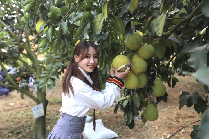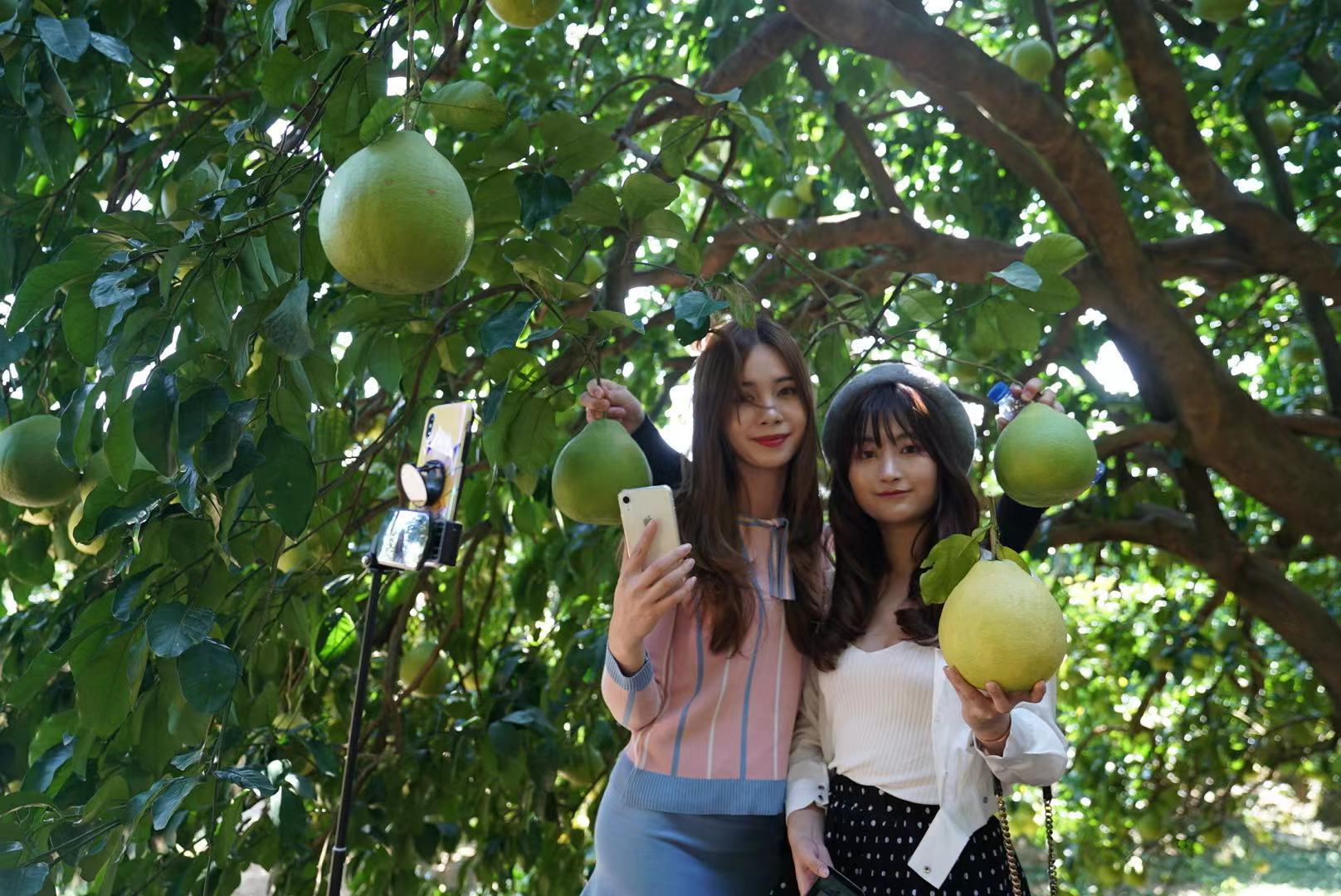 2019年11月2日上午,2019梅州柚产销对接大会暨梅县区第十届金柚飘香文化旅游节拉开帷幕,作为系列活动之一——“梅州柚—梅县金柚”宣传大使采摘体验活动同步开启。多位百万粉丝抖音主播、微博一直播主播和20名梅县金柚宣传形象大使,来到梅州市梅县区松口镇蓬下村东楼坑的百年金柚园,共同感受古老的故事以及体验采摘金柚的乐趣。网红主播全程为网友进行直播,小小的镜头前,可是有千万级粉丝围观,据统计,本次百年金柚园直播在抖音、微博的累计观看量超1100万。