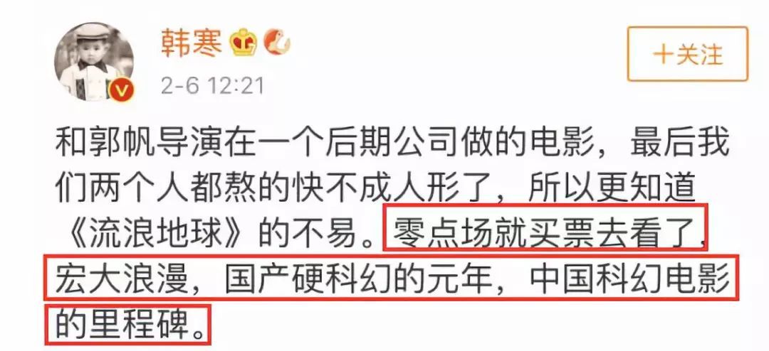 《流浪地球》的导演郭帆发了一条微博