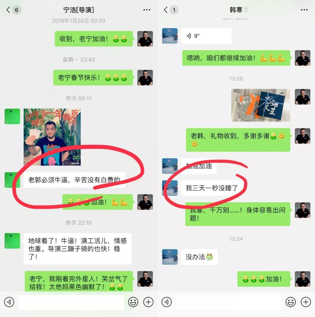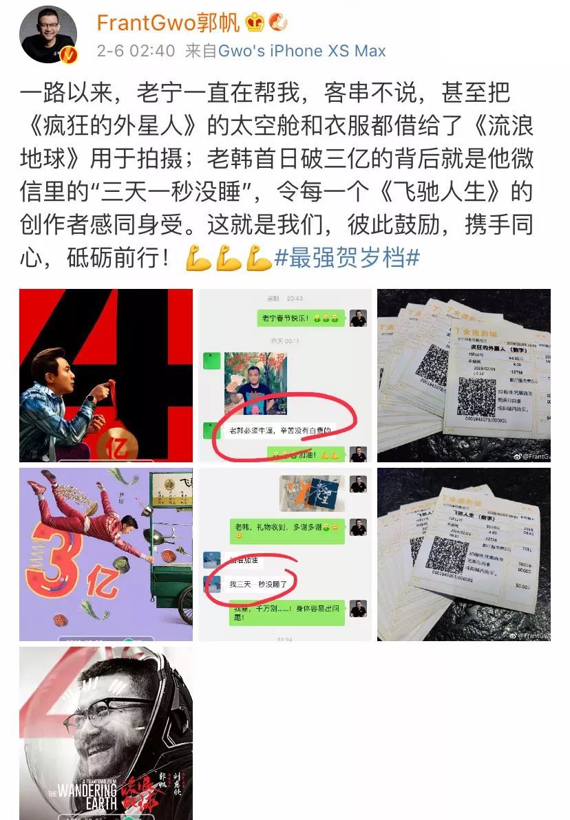 郭帆晒出宁浩、韩寒的聊天截图
