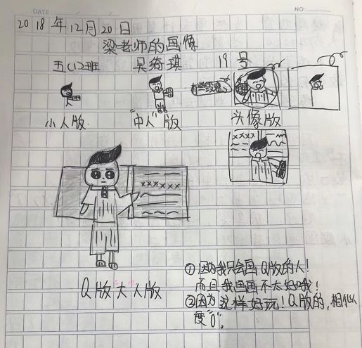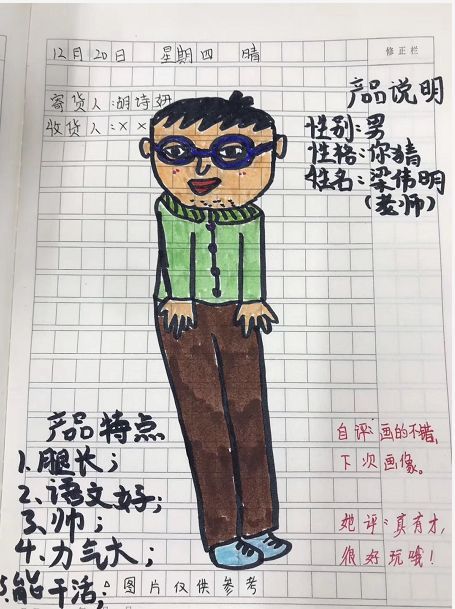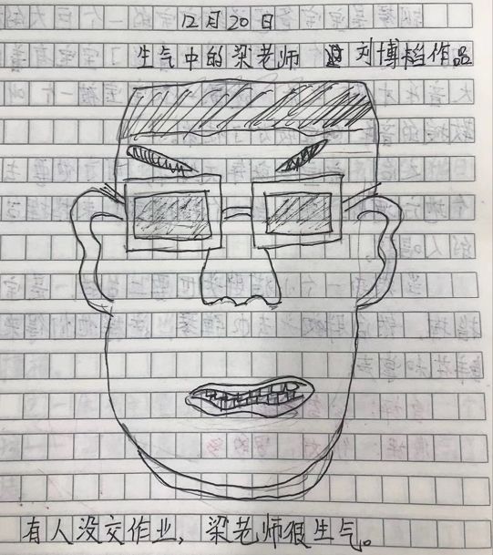 梁老师深受打击,他原本不想坚持的,不过每天还是有人交练笔,梁老师就说:“只要有一个人坚持写,我就坚持批改。”现在,梁老师天天都能收到30多本练笔本!(说实在话,刚建立练笔小组时我也是抗议的,同样的作业凭什么我们要多写一篇作文?刚开始我是能不也就不写常常偷懒,不过被爸妈发现后“语重心长”地教育一番,只好硬着头皮写下去。)