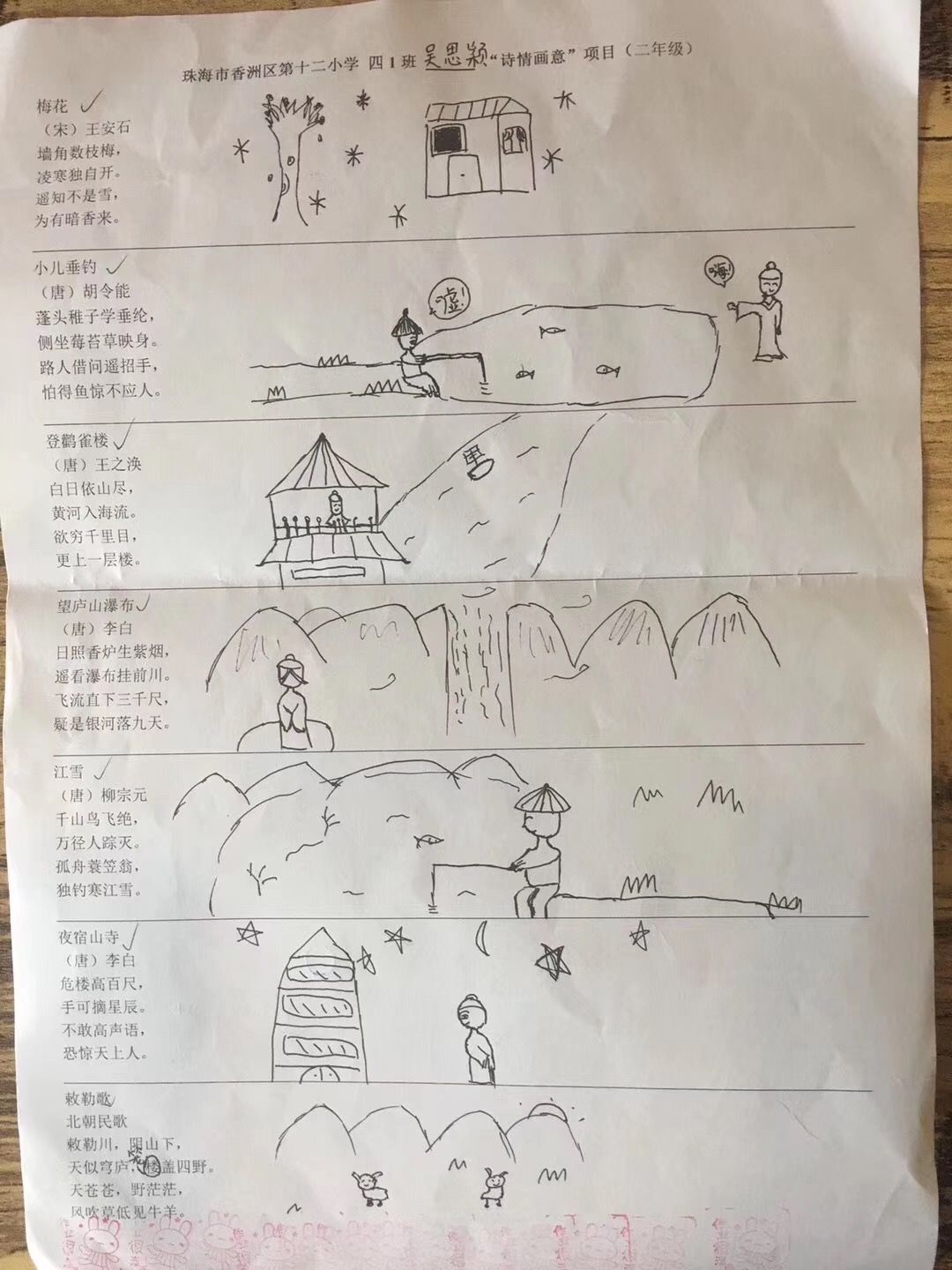 诗情画意社团有一个微信群,每一次背一首古诗都要录下来发到群里,还要按照对古诗的理解画一幅画。每次都会有两位社团“评委”,评出背得最流畅的、表情最丰富的“诗情画意之星”和“进步之星”。