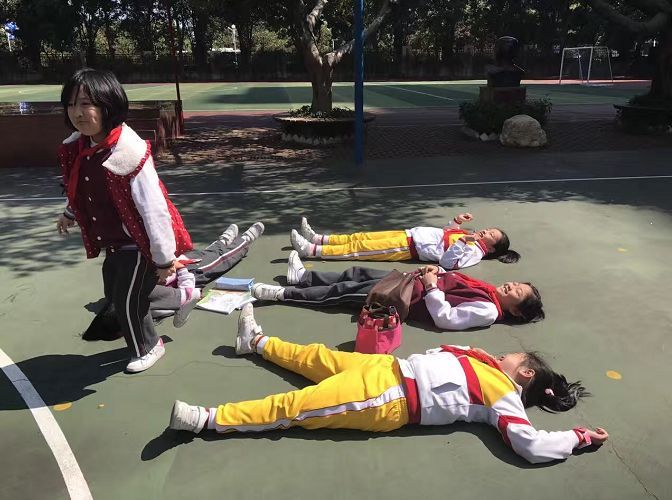 学完古诗《春日》,梁老师带孩子们到校园里感受春光的美好。孩子们直接躺到地上,和阳光来了个“近距离接触”。