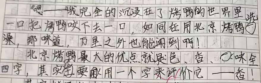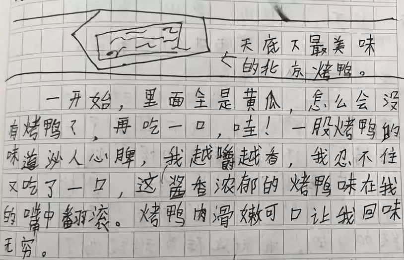 孩子们还进行了练笔,记录下了烤鸭的美味。