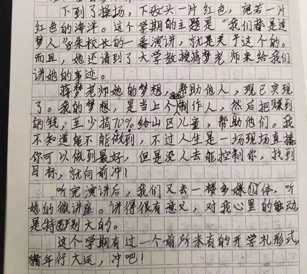 我们班作文扣分是最少的,源于天天400-500多字的练笔,练笔社团还有一个更好的名字,叫“我手写我心”小组。