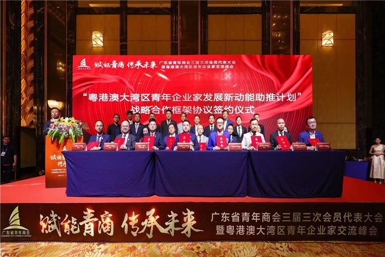 4、3月3日,“赋能青商·传承未来”广东省青年商会三届三次会员代表大会暨粤港澳大湾区青年企业家交流峰会举行。佛山市青年商会副会长严昱代表佛山市青年商会与广东省青年商会、国际青年商会香港总会 等15家粤港澳大湾区“9+2城市”青年社团组织签署“粤港澳大湾区青年企业家发展新动能助推计划”战略合作协议。