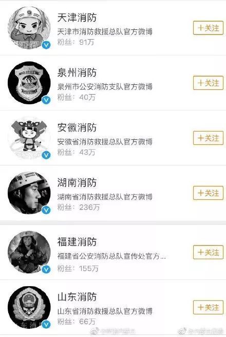 在30名救火英雄的追悼会举行之际,各地消防的官微头像都变成了灰色,以此缅怀远去的他们。