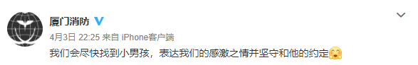 @厦门消防 :我们会尽快找到小男孩,表达我们的感激之情并坚守和他的约定