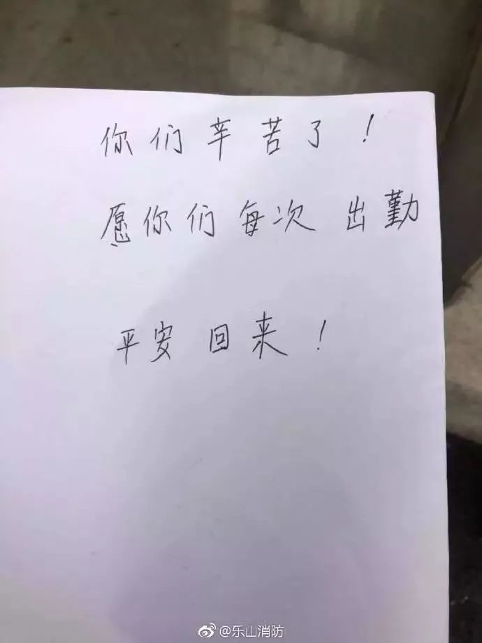 他还留下一张字条,上面写着:“请出勤时保护好自己,辛苦了!”