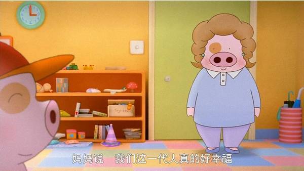 这只小猪出生时,天降异象。猪妈妈正在医院待产,忽然从窗外飞进来了一个红色胶兜(塑料盆),在她面前的半空盘旋。
