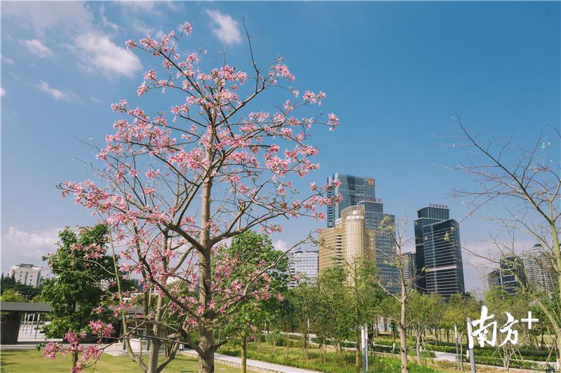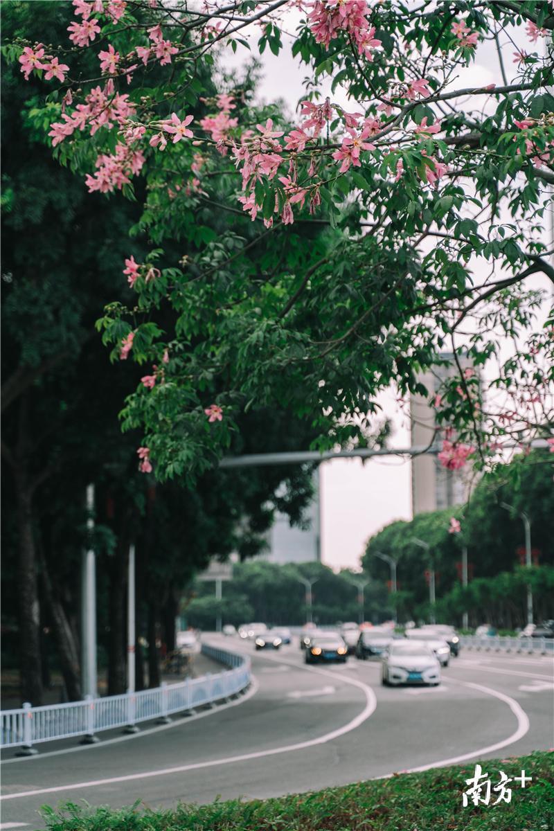 近看满树繁花,远观灿烂如星。在晴好天气的加持下,异木棉开得正盛。花团粉簇,天空蔚蓝,整座城市宛如一张水墨画。春看百花艳,秋赏美人树,南国四季飞花,千年古城添了一道靓丽的风景线。