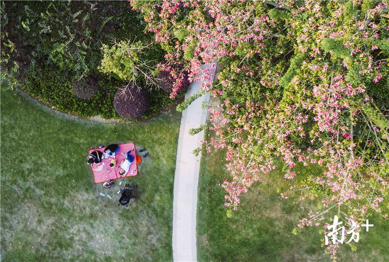 当东北的朋友传来喜讯“北方下雪了”,惠州依旧艳丽如春。只要时节一到,异木棉的梢头在一个晚上便有繁花堆积。平时枝桠枯燥并不起眼的树,转身一变成了“粉红花雨”,从城市上空洒落一树的温柔明媚。