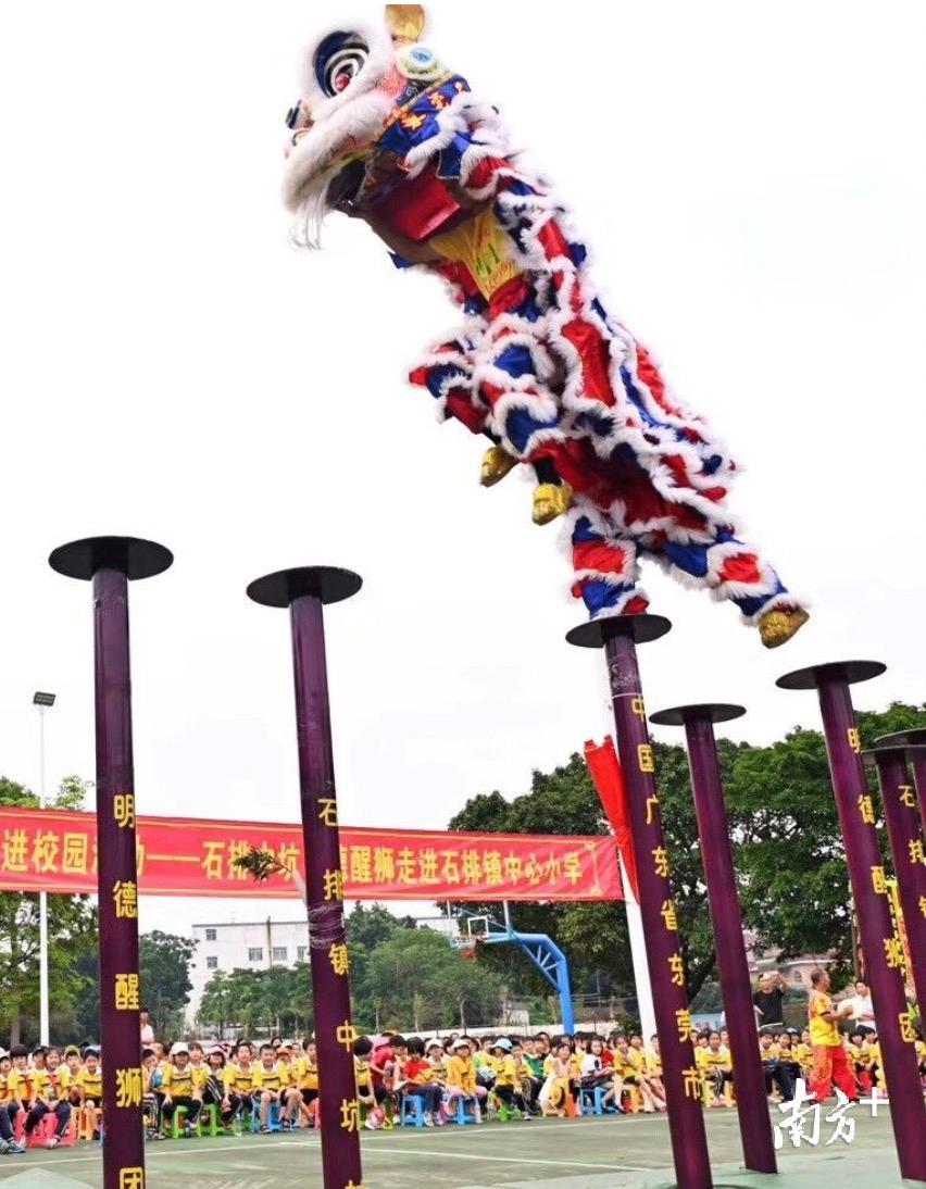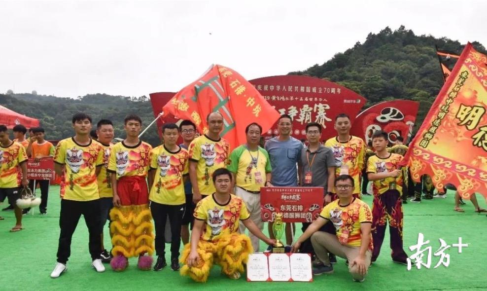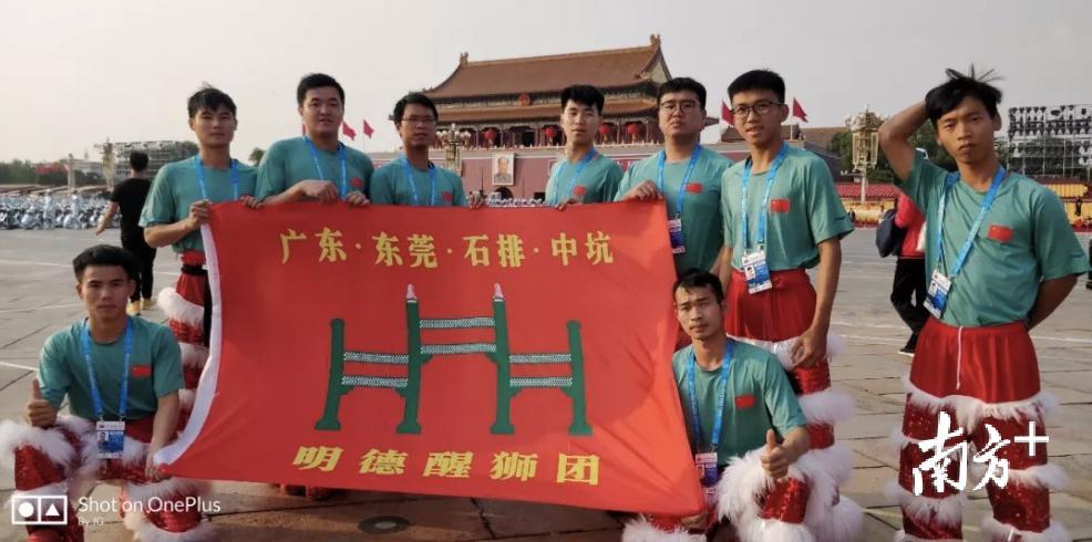 在今年国庆期间举行的庆祝中华人民共和国成立70周年联欢活动上,来自东莞石排中坑的明德醒狮队在第二篇章《在希望的田野上》代表广东醒狮登台亮相。紧接着,在10月5日,明德醒狮队参加了2019“黄飞鸿杯”第十五届世界华人狮王争霸赛暨水上双狮挑战赛,获得水上飞狮金奖的荣誉。