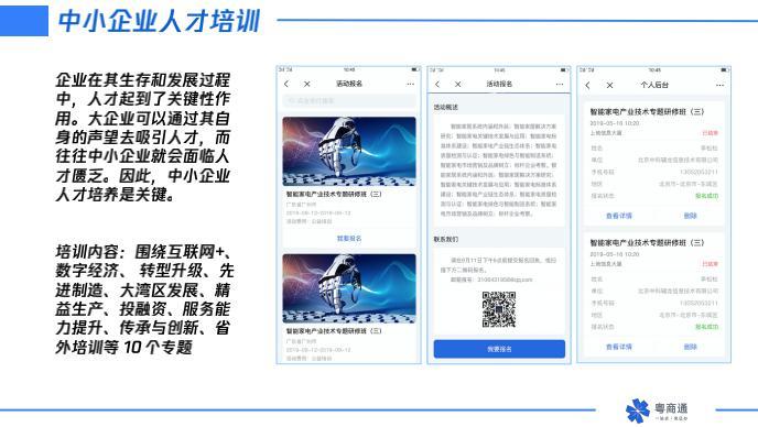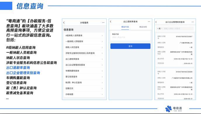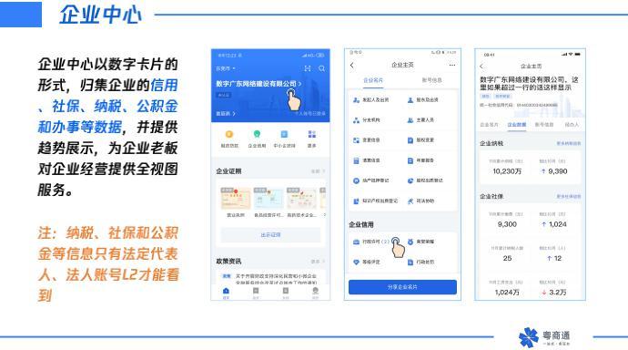 据了解,“粤商通”是继“粤省事”之后,广东省在政务服务改革和“数字政府”建设过程中推出的重要产品,它涵盖了企业开办、融资贷款、办税服务、就业参保等业务板块,全流程服务企业,助力企业发展。通过手机通办多项涉企事项,实现新办企业、涉企政策推送、政企互动、企业信用等一系列服务。