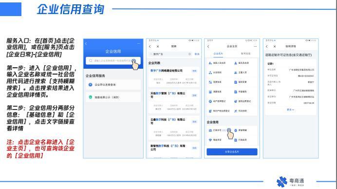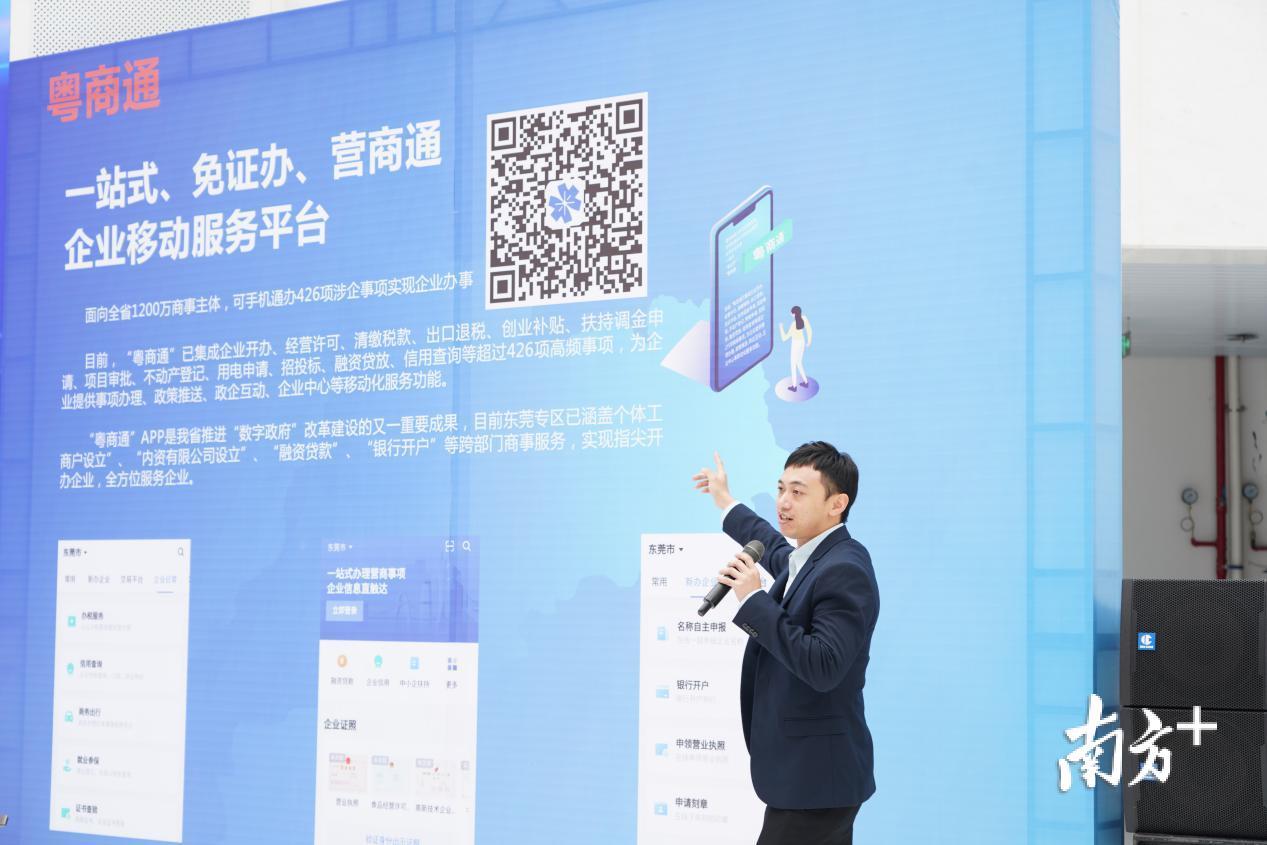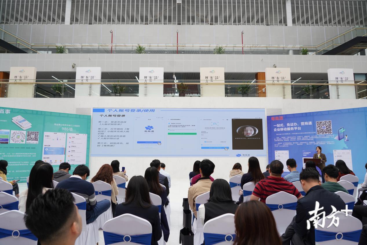 关联常用电子证照,下载“粤商通”APP、登录使用、关联企业业务查询、企业信用查询、政策查看、名称自主申报和企业年度报告办理……在推广现场,数字广东公司的培训讲师为现场“政务青年”讲解“粤商通”平台功能模块,并演示“粤商通”使用操作方式。