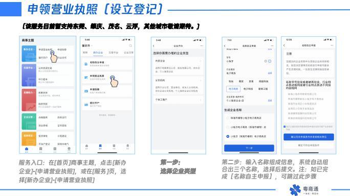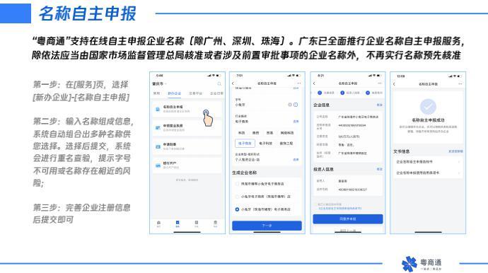 “过去许多老板开办企业总要花几千块钱找中介代办,但是现在企业可以直接在手机APP上自己在线办理。”黄丽燕告诉记者,企业开办全流程进驻粤商通平台,覆盖内资、分支机构、外资、个体户、合作社等企业类型,涉及名称自主申报、设立登记、刻章申请、开户预约、申领发票、多证合一备案等事项的办理。