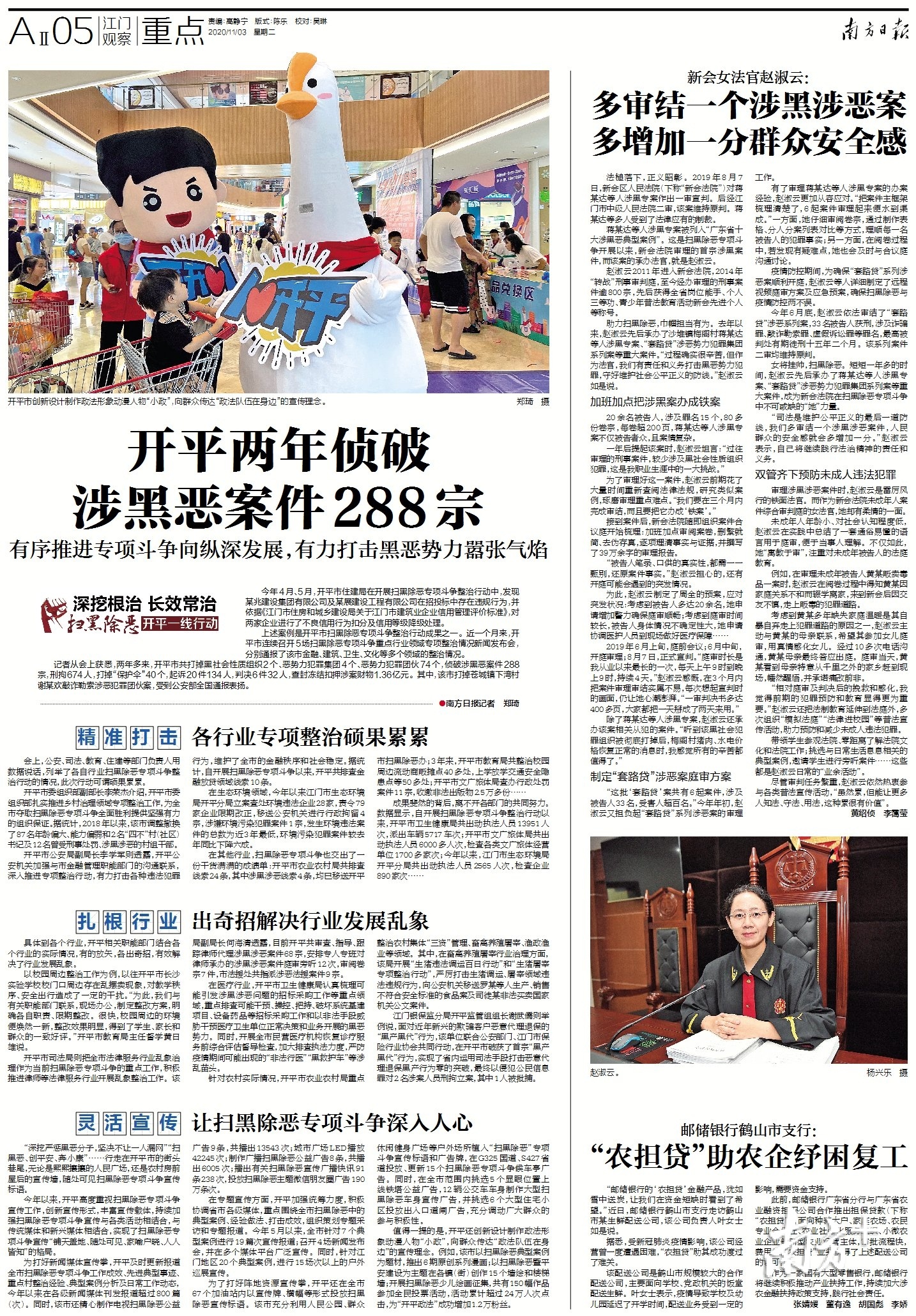 在其他行业,扫黑除恶专项斗争也交出了一份干货满满的成绩单:开平市农业农村局共排查线索24条,其中涉黑涉恶线索4条,均已移送开平市扫黑除恶办;3年来,开平市教育局共整治校园周边流动商贩摊点40多处,上学放学交通安全隐患点等50多处;开平市文广旅体局查办行政处罚案件11宗,收缴非法出版物2.5万多份……