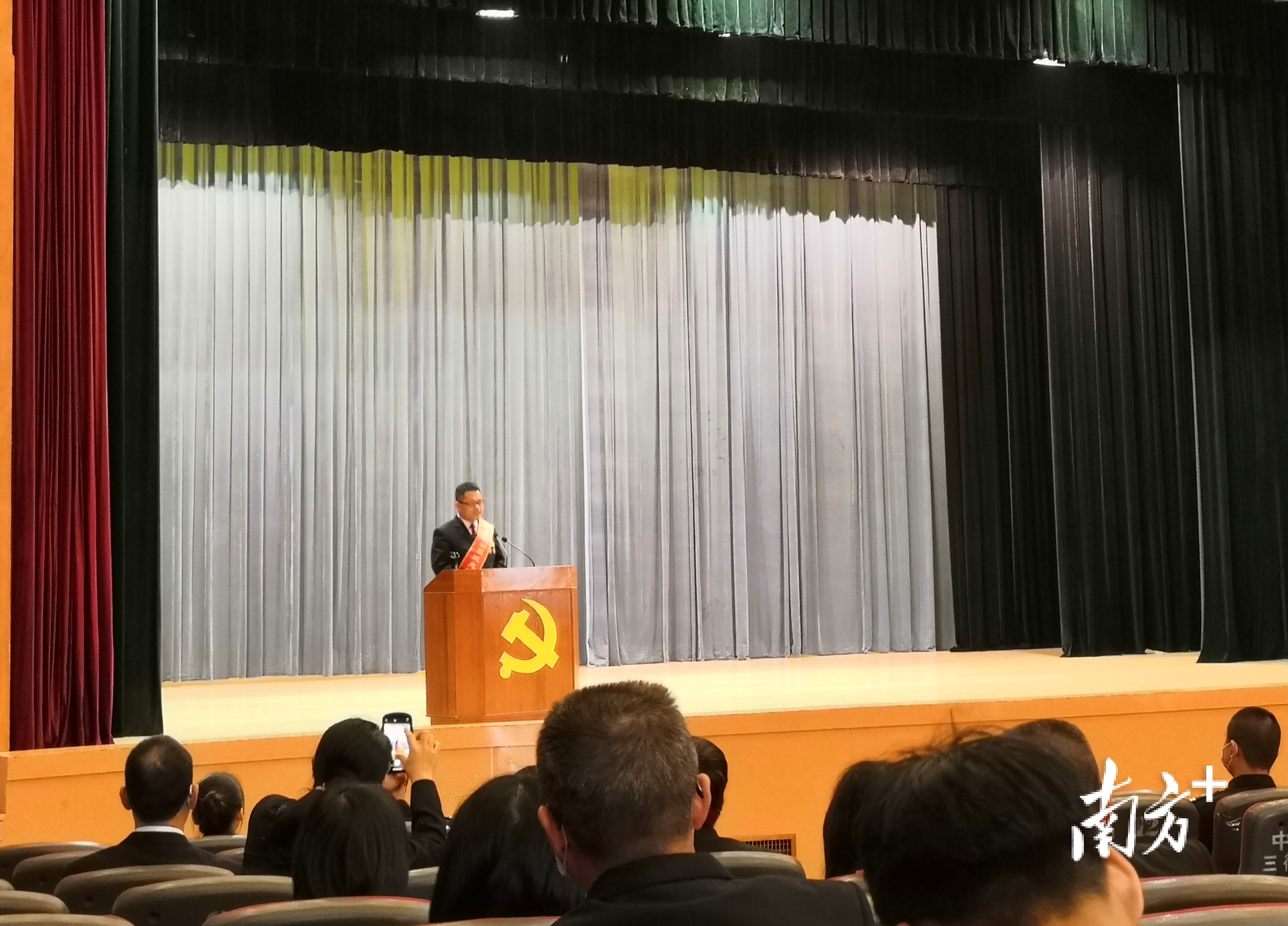 3月26日下午, 开平检察院第六检察部主任王洪平在开平市政法英模报告会上作报告。他讲述了检察援藏的故事,以及参与完善检察体制和工作机制的工作经验。