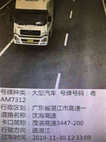近日,麻章交警大队接到湛江市公安局交警支队的通知,称属广州交警黄埔大队管辖的逾期未年检的粤AM****号重型厢式货车正在麻章辖区行驶,广州交警黄埔大队追踪至麻章要求配合查扣。接指令后,交警麻章大队周光仁大队长立即安排机动中队根据推送的轨迹信息,设卡拦截。