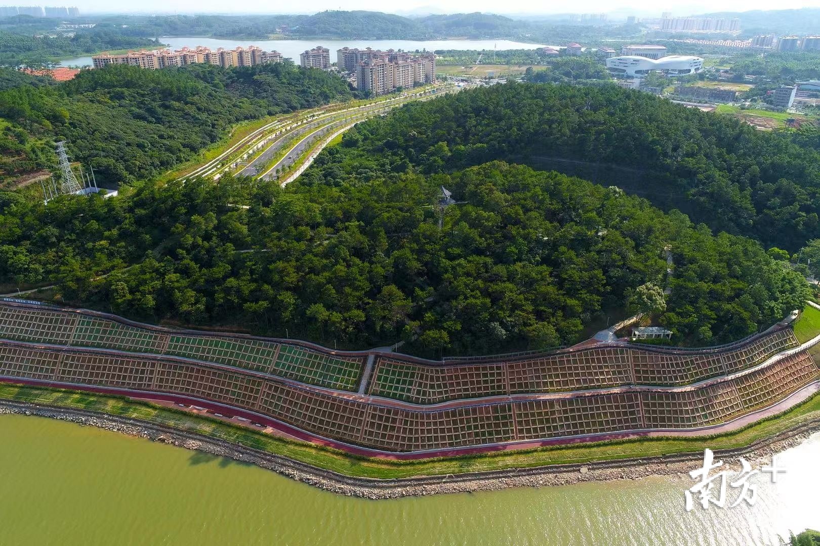 在增城中心城区荔湖街道,距离熙熙攘攘的万达商圈、地铁口只有2公里处一座巨大“鸟巢”——荔湖圣皇洲江心小岛坐落于增江河上、雁塔山下。四面环水的生态绿洲是城市客厅,也是鹭鸟栖息的“小鸟天堂”。