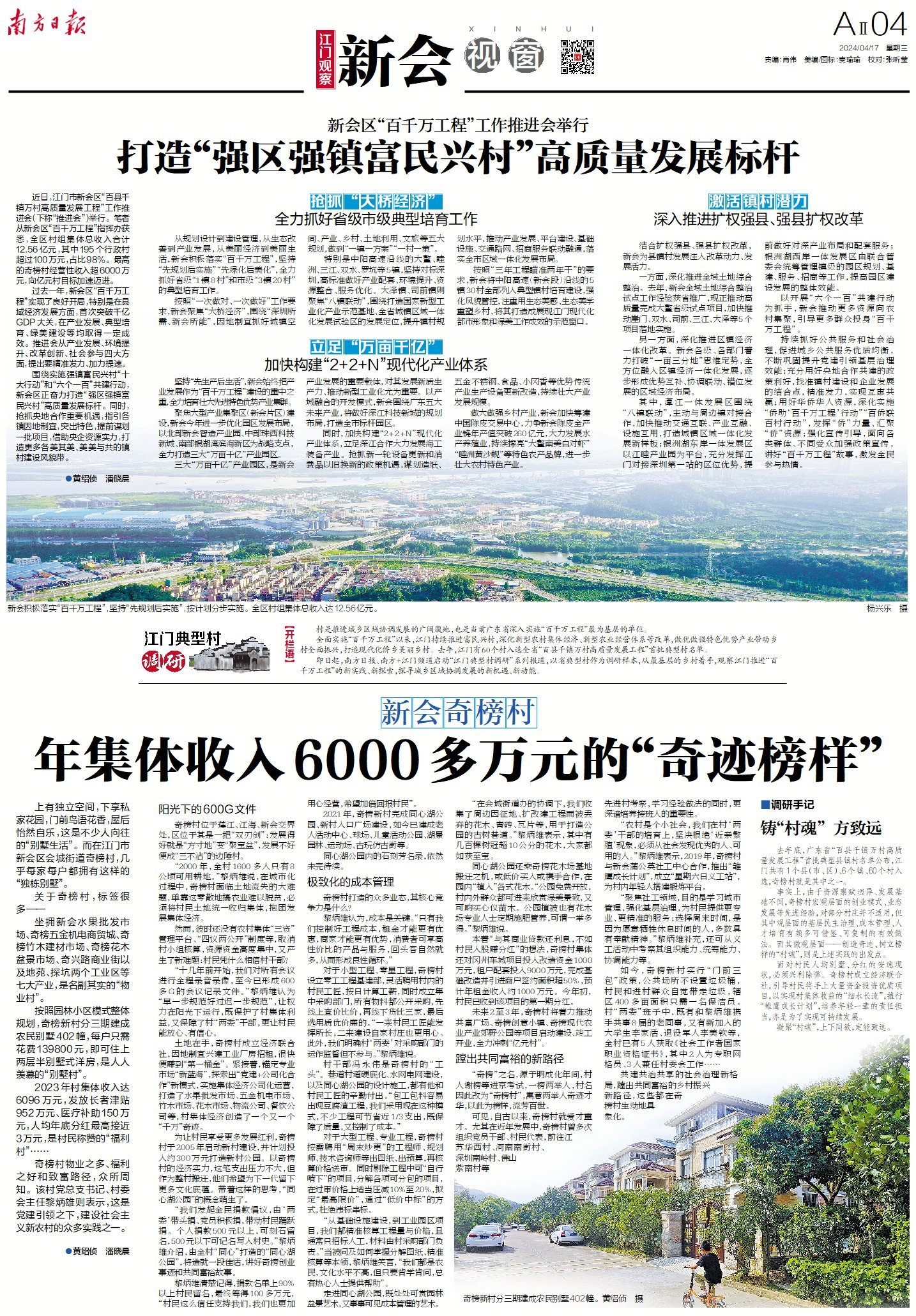 南方日报、南方+江门频道启动“江门典型村调研”系列报道,以省典型村作为调研样本,观察江门推进“百千万工程”的新实践、新探索,探寻城乡区域协调发展的新机遇、新动能。