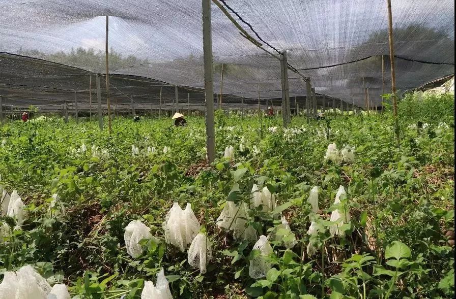 家庭种植门槛高、资金少、技术难,这是制约农民种植竹荪的三个难题。因此,“公司+平台+农户”模式的具体做法为公司向农户提供菌种、基质(竹碎、木碎)和免费转让技术,农户则向公司提供劳务输出、土地流转和竹木原料等,公司对于农户种植的新鲜竹荪,以市场价敞开回收。