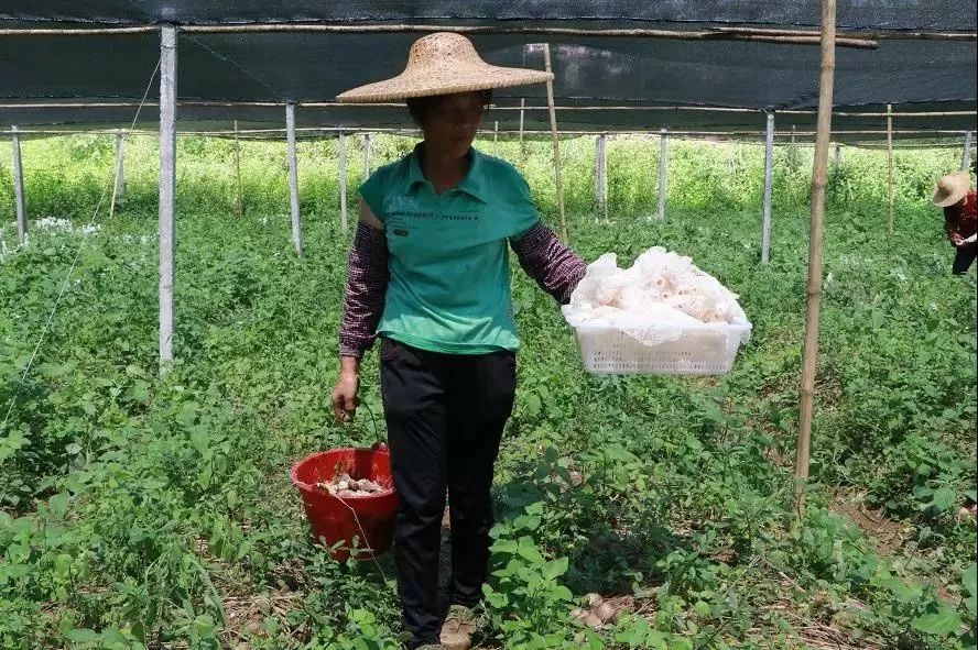 其实种植竹荪的回报率很高,毛利率可以高达90%,理论上一亩地可以产出新鲜竹荪1000公斤,按照每公斤80元的回收价计算,农户每亩产值可以达到8万元。如果农户在公司的冻干工厂和种植基地务工,按照每小时10元的工资计算,一 天8小时,一个月也有2000多元的收入。
